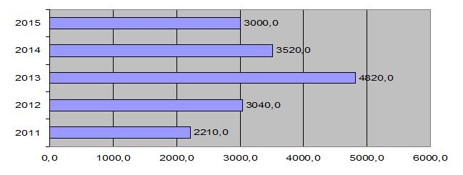Рис.9. Объем финансирования сферы «Образование» из внебюджетных источников на 2011-2015гг.[3], млн. руб.
