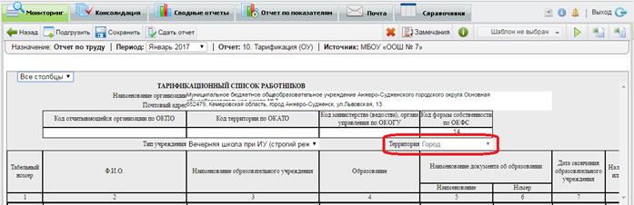 Форма отчета ежемесячная. Период «Январь 2017» необходимо заполнить вручную, а последующие периоды можно подгружать воспользовавшись кнопкой на верхней панели «Подгрузить».