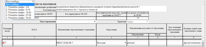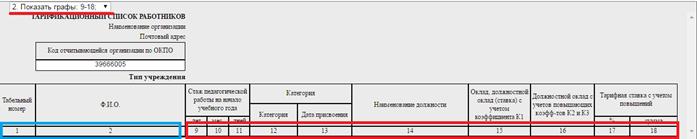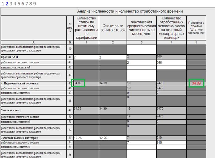 Значение в графе 1 – «Количество ставок по штатному расписанию и по тарификации» сравнивается со значением из отчета – «Штатное расписание». Если будут расхождения, отчет не пройдёт проверку.