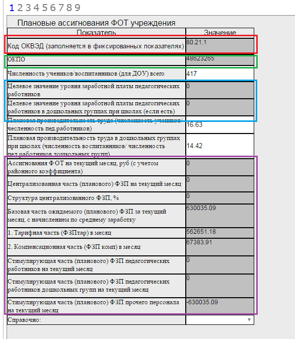 или введенное ОКПО в этих отчетах будет отличаться от введенного ОКПО в фиксированных показателях учреждением (см. раздел 3, отчеты с 01-06 красным цветом). При обнаружении данной ситуации необходимо связаться с управлением образования по Вашей территории и согласовать ОКПО.