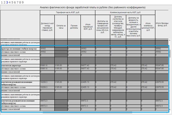 3) Ниже (выделено синим цветом), эти значения подтягиваются из отчета «06. Целевое значение по заработной плате педагогических работников».