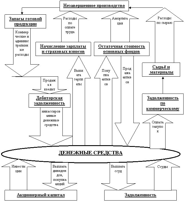 Предприятие (организация), являясь элементом экономической системы, вступает в разносторонние финансовые отношения с партнёрами, клиентами, государственными институтами и т. п. (левая часть рис. 6.1), выраженные в денежной форме и отрегулированные по времени, т. е. являющиеся денежными потоками. Денежные потоки носят двусторонний характер и показывают результаты хозяйственных операций предприятия с другими субъектами рынка.
