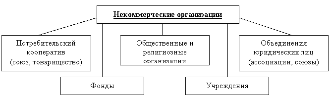 - некоммерческие организации: не ставят цели получения прибыли и распределения её между участниками (см. рис. 1.3).