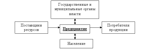 Внешняя среда предприятия, непосредственно определяющая эффективность и целесообразность его работы, - это потребители продукции, поставщики производственных компонентов, а также государственные органы и население, живущее в окрестностях предприятия (см. рис. 1.4).