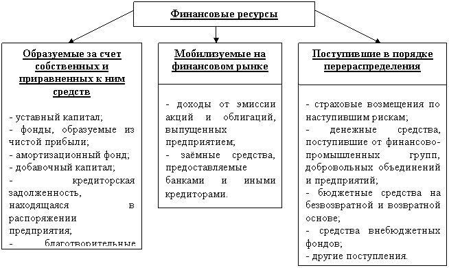 Финансовые ресурсы предприятия – это денежные средства, имеющиеся в распоряжении предприятия и предназначенные для осуществления текущих затрат и затрат по расширенному воспроизводству, для выполнения финансовых обязательств и экономического стимулирования работающих. Финансовые ресурсы обеспечивают кругооборот основного и оборотного капитала, взаимоотношения с государственным бюджетом, налоговыми органами, банками и другими организациями.