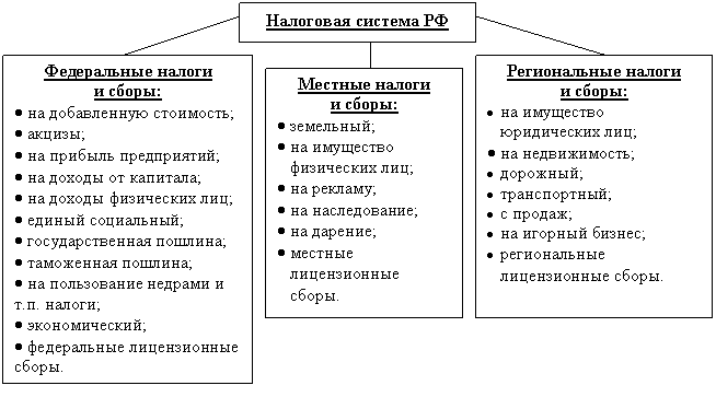 Рис. 2.20. Уровни налоговой системы РФ.