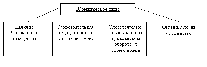 Юридическое лицо – это организация, которая имеет в собственности, хозяйственном ведении или оперативном управлении обособленное имущество, отвечает этим имуществом по своим обязательствам, может от своего имени приобретать или осуществлять имущественные и личные неимущественные права, нести обязанности, быть истцом и ответчиком в суде. Основные признаки юридического лица представлены на рис.1.1. Юридические лица могут быть корпоративными и унитарными, в которых учредители имеют вещные права на имущество этих лиц.