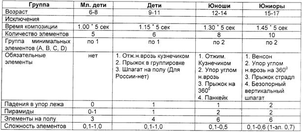 Требования к составлению спортивной комбинации