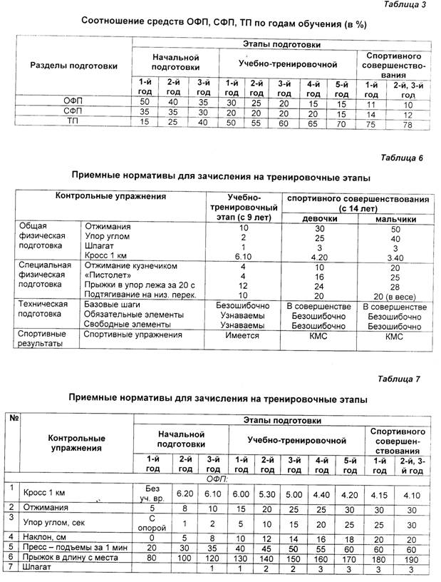 Первая часть программы – нормативная, включает в себя количество рекомендаций по группам занимающихся, общефизической подготовке, специально–физической, технико-тактической и теоретической подготовке, систему участия в соревнованиях, инструкторскую и судейскую практику по годам обучения для каждого этапа многолетней подготовки.