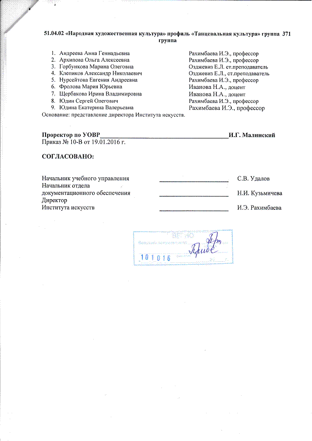 51.03.02 «Народная художественная культура» профиль «Руководство хореографическим любительским коллективом», группа 432