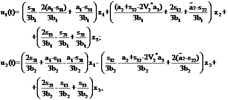 В соответствии с методикой построения регулятора синтезирован искомый закон управления u(t), компоненты которого имеют вид: