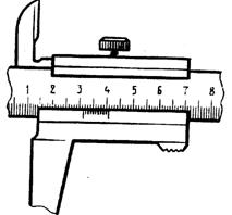 то действительный размер равен сумме двух слагаемых: целому числу миллиметров, сложенному с дробной частью. Целое число миллиметров показывает ближайший штрих основной шкалы слева от нулевого штриха нониуса, а число десятых долей миллиметра равно порядковой цифре штриха нониуса, который точно совпал со штрихом основной шкалы (штанги).