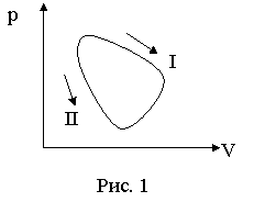 Круговым процессом (циклом) называется процесс, при котором система, пройдя ряд состояний, возвращается в исходное состояние. На pV – диаграмме цикл изображается замкнутой кривой (рис. 1). Если цикл осуществляется по часовой стрелке (I), то он называется прямым, если в противоположном направлении – обратным. Первый осуществляется в тепловых двигателях, второй - в холодильных машинах.