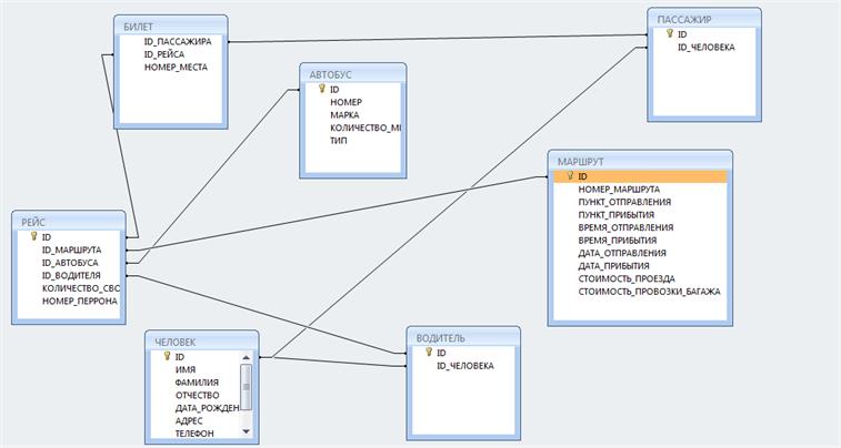 CREATE TABLE РЕЙС (ID INTEGER PRIMARY KEY, ID_МАРШРУТА INTEGER, ID_АВТОБУСА INTEGER, ID_ВОДИТЕЛЯ INTEGER, КОЛИЧЕСТВО_СВОБОДНЫХ_МЕСТ INTEGER, НОМЕР_ПЕРРОНА INTEGER)