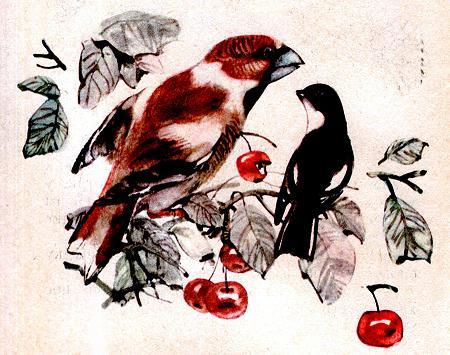 - Да, твой нос никуда не годится, - сказал дубонос, - слабенький у тебя нос. То ли дело мой! Я им вишнёвую косточку, как скорлупку, раскусываю. Сидишь себе на месте, клюёшь ягоды да щёлкаешь. Крак! - и готово. Крак! - и готово. Вот бы тебе такой нос.