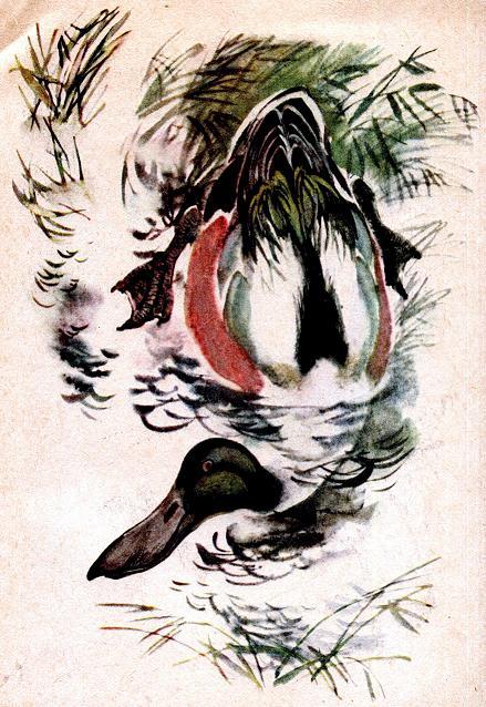 Посмотрели птицы вниз, а там из камыша торчит нос, длинный, как карандаш, и тонкий, как спичка.