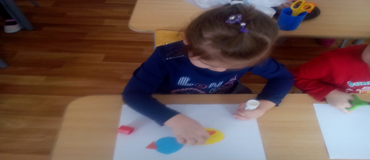 В:- У вас есть овал? (Нет) Возьмите в руки самый большой прямоугольник - это будет туловище птицы, как его можно превратить в овал?