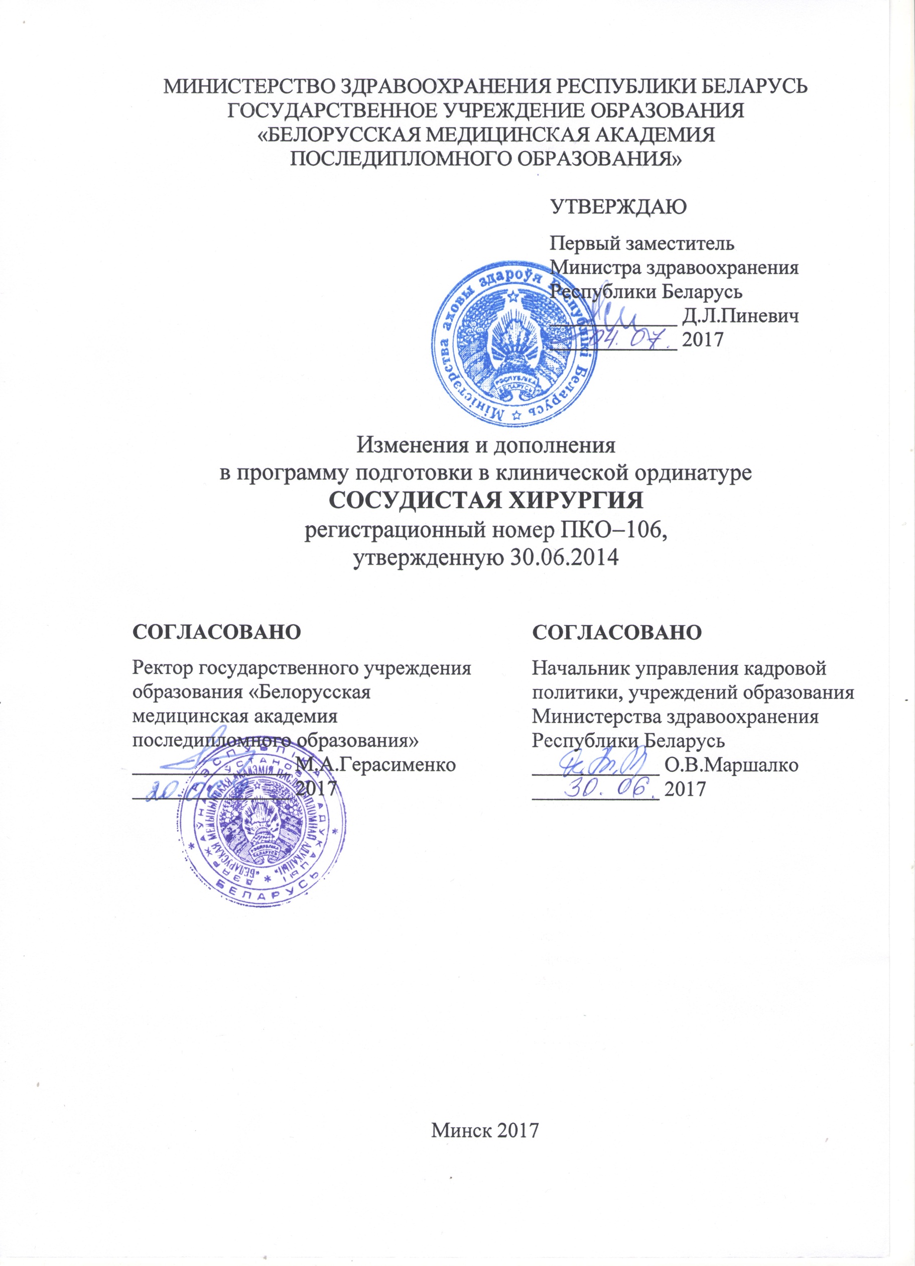 ПКО-106, утвержденную Первым заместителем Министра здравоохранения Республики Беларусь 30.06.2014, следующие изменения и дополнения: