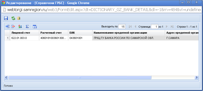 Форма редактирования банковских реквизитов (Рисунок 20) предназначена для удаления или добавления данных банковских счетов заказчика. Для того чтобы добавить номер счета, необходимо добавить новую строчку в таблице по кнопке [Добавить строку].