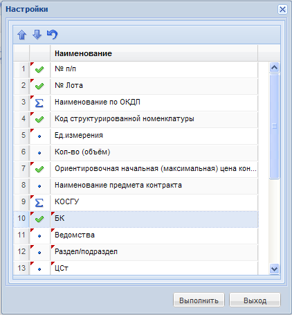 Для установки основных реквизитов отчета, необходимо отметить требуемые поля флагом «