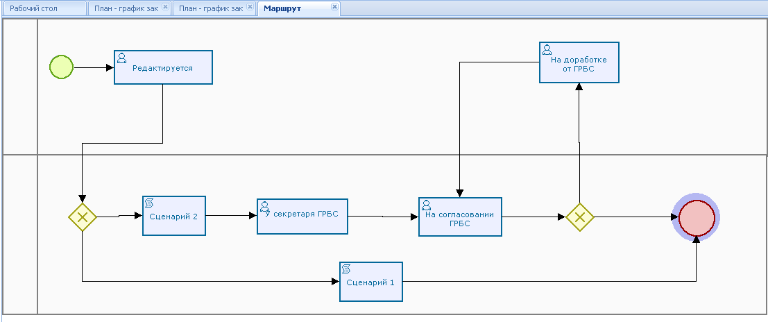 Для просмотра модели маршрута бизнес-процесса и текущего состояния документа на маршруте необходимо его выделить и нажать на кнопку [Показать на маршруте] (Рисунок 32), при этом откроется форма, демонстрирующая блок-схему текущей модели бизнес-процесса.