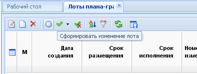[Сформировать изменение лота] (Рисунок 33). При этом выделенный документ отобразиться в списке документов «Лот план-график закупок» в состоянии Создание нового, с присвоенным номером изменения.