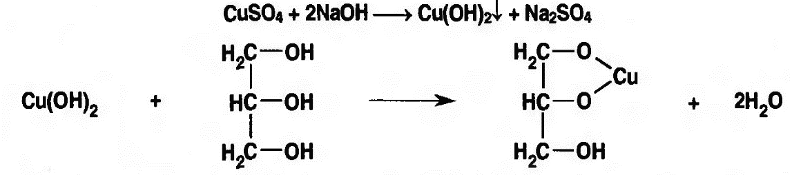 ~Приведенная ниже реакция образования глицерата меди используется для … глицерина.