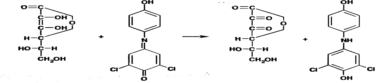 ~Для идентификации кислоты аскорбиновой используют реакцию взаимодействия с окрашенным в синий цвет раствором 2,6-дихлорфенолиндофенола по образованию … .