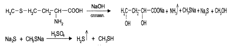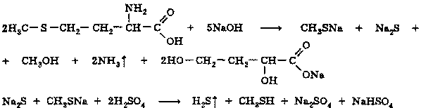 ~Приведенную ниже реакцию идентификации с выделением сероводорода и меркаптана используют в анализе … .