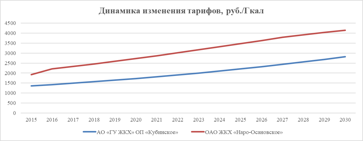 Таблица 3 - Прогноз роста тарифа на тепловую энергию, руб/Гкал