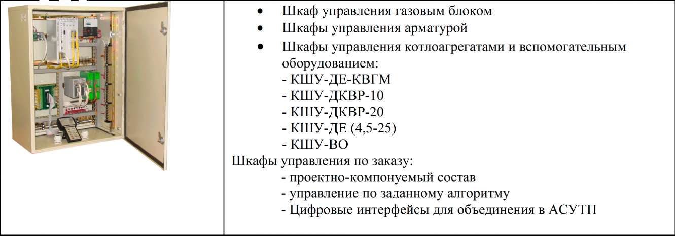 Поставка комплектных шкафов для автоматизации котлов малой и средней мощности серий ДЕ, КВГМ, ДКВР.