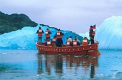 наблюдать непосредственно процесс образования айсбергов: глыбы льда откалываются от рукавов ледника и падают в воду.