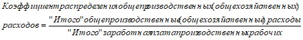 Коэффициент распределения общепроизводственных (общехозяйственных) расходов рассчитывается по следующей формуле: