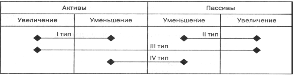 Рисунок 1. Влияние разных типов хозяйственных операций на валюту баланса