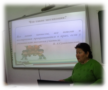 Презентацию провела в виде интерактивной лекции, которая неоднократно прерывалась приведением примеров из практики моих подопечных и их вопросами по конкретным примерам. Участники познакомились со значением слова «мотивация», концепцией собственного «Я»,иерархией потребностей Маслоу, «Вызов и обучение: Чиксентмихайи»,отличием внутренней мотивации от внешней. Было не очень просто связать теоретический материал презентации с реалиями нашей школы, нынешней системы образования, слишком много оказалось внешних факторов, влияющих на мотивацию учащихся. В ходе презентации моя подопечная Н. сделала вывод, что несмотря на все барьеры, необходимо искать пути повышения мотивации учащихся.