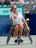 | Теннис на колясках. Теннис на колясках впервые появился в паралимпийской программе в 1992 г. Сам вид спорта зародился в США в начале 1970-ых и в сегодняшние дни продолжает совершенствоваться. Правила игры фактически повторяют правила традиционного тенниса и, естественно, требуют от спортсменов аналогичных навыков Единственная разница заключается в том, что игрокам позволено два аута, причем первый - в пределах границ корта. Чтобы получить доступ к игре, спортсмен должен быть медицински продиагностирован на наличие ограничений по подвижности. В программу Паралимпийских Игр включены одиночные и парные состязания. В дополнение к Паралимпийским Играм, теннисисты соревнуются во многочисленных национальных турнирах. |