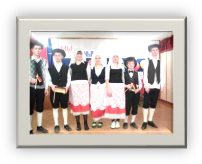 Учащиеся нашей школы принимали участие в районном фестивале-конкурсе «Вместе мы большая сила - 2012», посвященном Международному Дню толерантности. Наша команда «Дружба - Freundschaft» представила на этом мероприятии страну Германию. Национальные костюмы, флаг страны, выполненный в разных стилях, немецкая выпечка, шуточная презентация о Германии – все это было представлено на празднике. В результате наша команда получила 2 место, участники фестиваля были отмечены грамотой и памятными сувенирами.