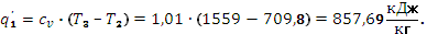 Т. к. линия 5-1 – изохорный отвод тепла, то ![]()