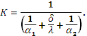 - коэффициенты теплоотдачи от первой жидкости к стенке и от стенки ко второй жидкости соответственно, Вт/(м2·°С); ![]()