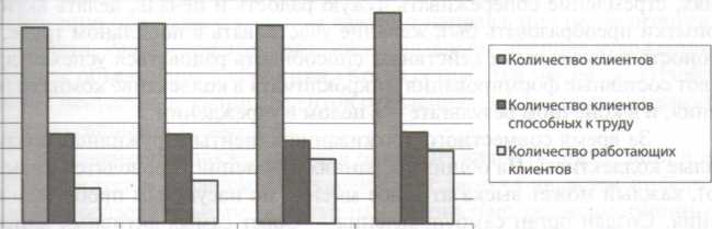 мендаций и разработки индивидуальных программ реабилитации. По результатам обследования 11 дееспособных клиентов трудоустроены в орга-