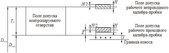 3. По маркировке на калибре определить, для проверки какого отверстия он предназначен (номинальный диаметр отверстия, отклонение поля допуска отверстия и квалитет).