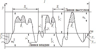 Числовые значения шероховатости поверхности определяют от единой базы, за которую принята средняя линия профиля m, т. е. базовая линия, имеющая форму номинального профиля и проведенная так, что в пределах базовой длины среднее квадратическое отклонение профиля до этой линии минимально. Длина оценки