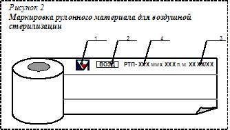 4.1. Каждая потребительская единица стерилизационной упаковки для упаковывания медицинских изделий, стерилизуемых паровым, воздушным методом содержит маркировку, условные обозначения, символы и знаки, представленные на рисунках 1, 2.