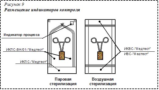 6.1. Контроль параметров режимов и условий стерилизации осуществляется с помощью химических индикаторов, размещаемых как снаружи, так и внутри стерилизационной упаковки.