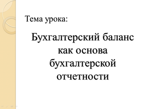 Тема: Бухгалтерский баланс как основа бухгалтерской отчетности