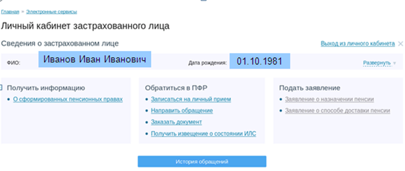 Через «Личный кабинет застрахованного лица» гражданин может записаться на личный прием, направить обращение в ПФР, заказать необходимый документ или справку, получить извещение о состоянии индивидуального лицевого счета. В Кабинете можно воспользоваться версией уже известного всем пенсионного калькулятора и рассчитать условный размер своей будущей пенсии.