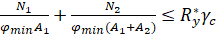 – коэффициент продольного изгиба, определяемый для усиливаемого и элемента усиления
