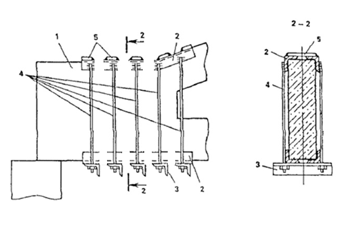 4 - предварительно напряженные затяжки; 5 - соединительные планки