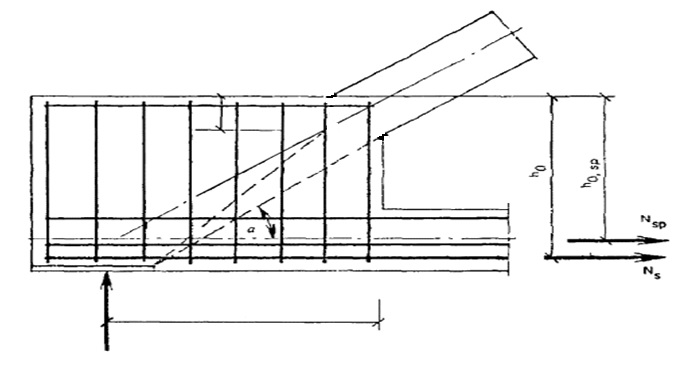 Расчетное усилие в напрягаемых хомутах усиления опорных узлов ферм можно определить исходя из двух возможных вариантов разрушения: