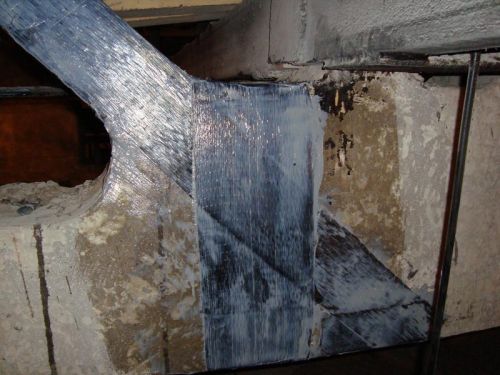 При таком варианте усиления, углеткань всесторонне обжимает конструкцию, препятствуя развитию поперечных деформаций, тем самым увеличивает прочность бетона (прочность бетона во всестороннем обжатии увеличивается), препятствуя развитию характерных трещин.